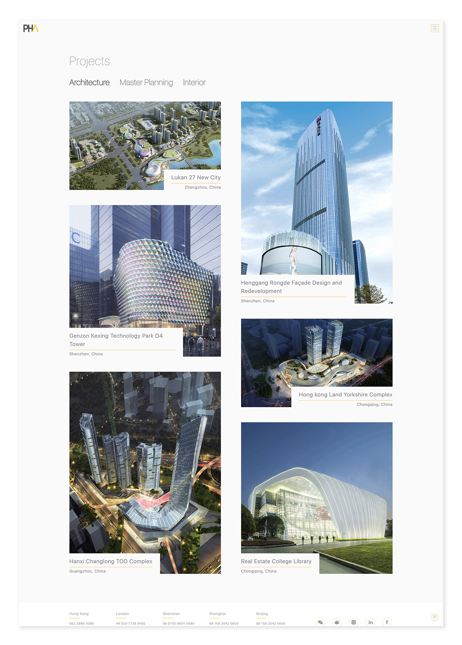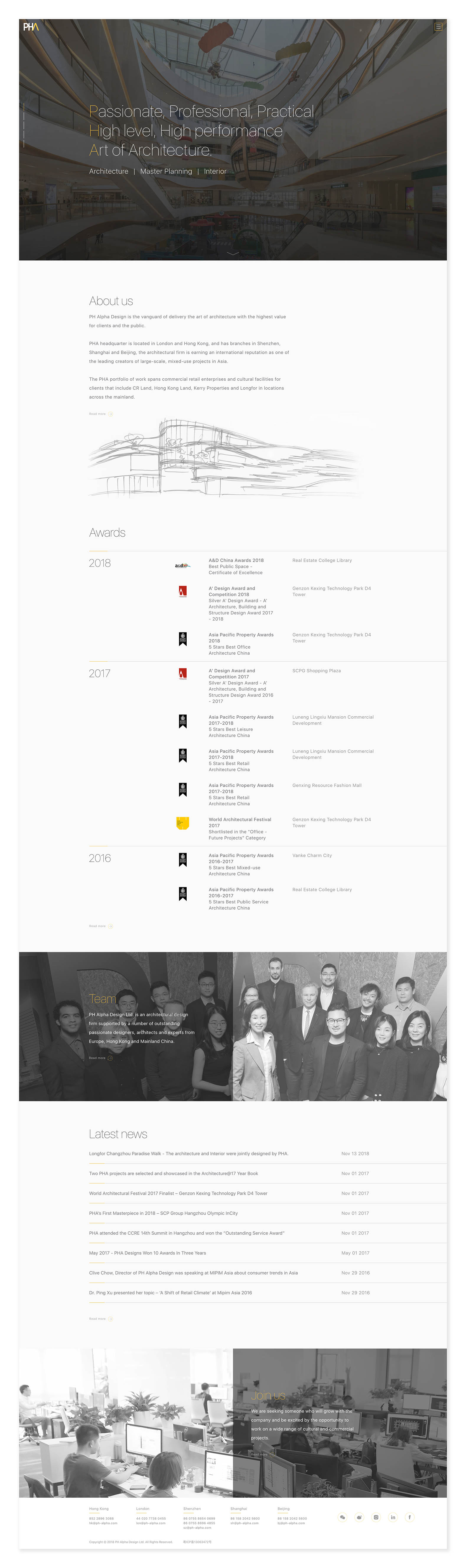 PHA是一家建筑设计公司,总部设立于伦敦及香港,在深圳、上海和北京设立有分公司。我们从网站的访问流程开始进行梳理,最终实现网页和手机端的全部设计及后台工作。